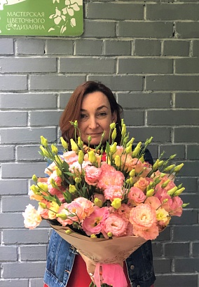 Монобукет из эустомы (лизиантуса) Алисия (пр-во Голландия)-19 шт. оформлен в крафтов...