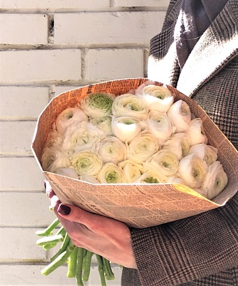 Букет из 31 белого ранункулуса