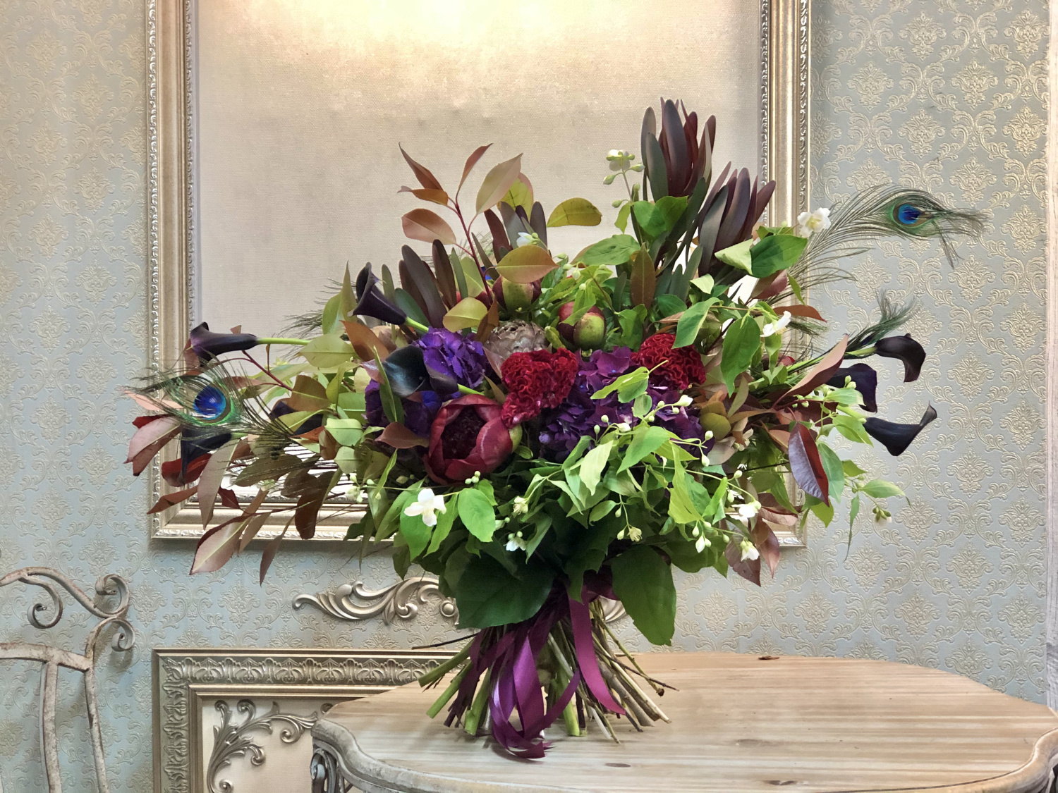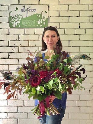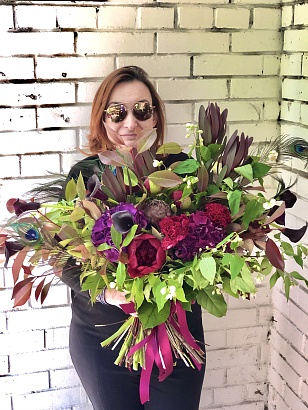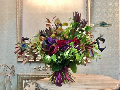 с артишоком/с гортензией/с жасмином/с леукатое/с леукодендроном /с перьями павлина/с салалом/с целлозией/с каллами/с пионами