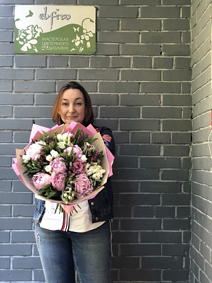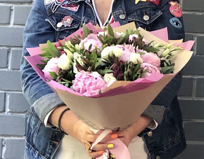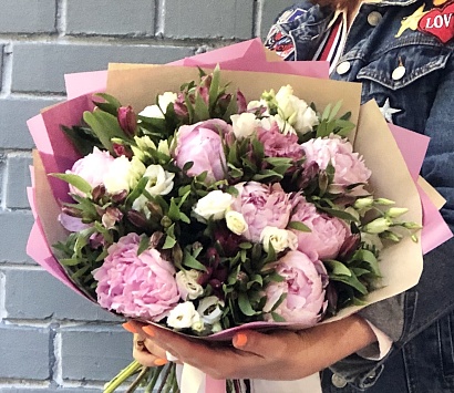 Сборный букет. Состав: Пион 7, Альстромерия 10, Лизиантус 6