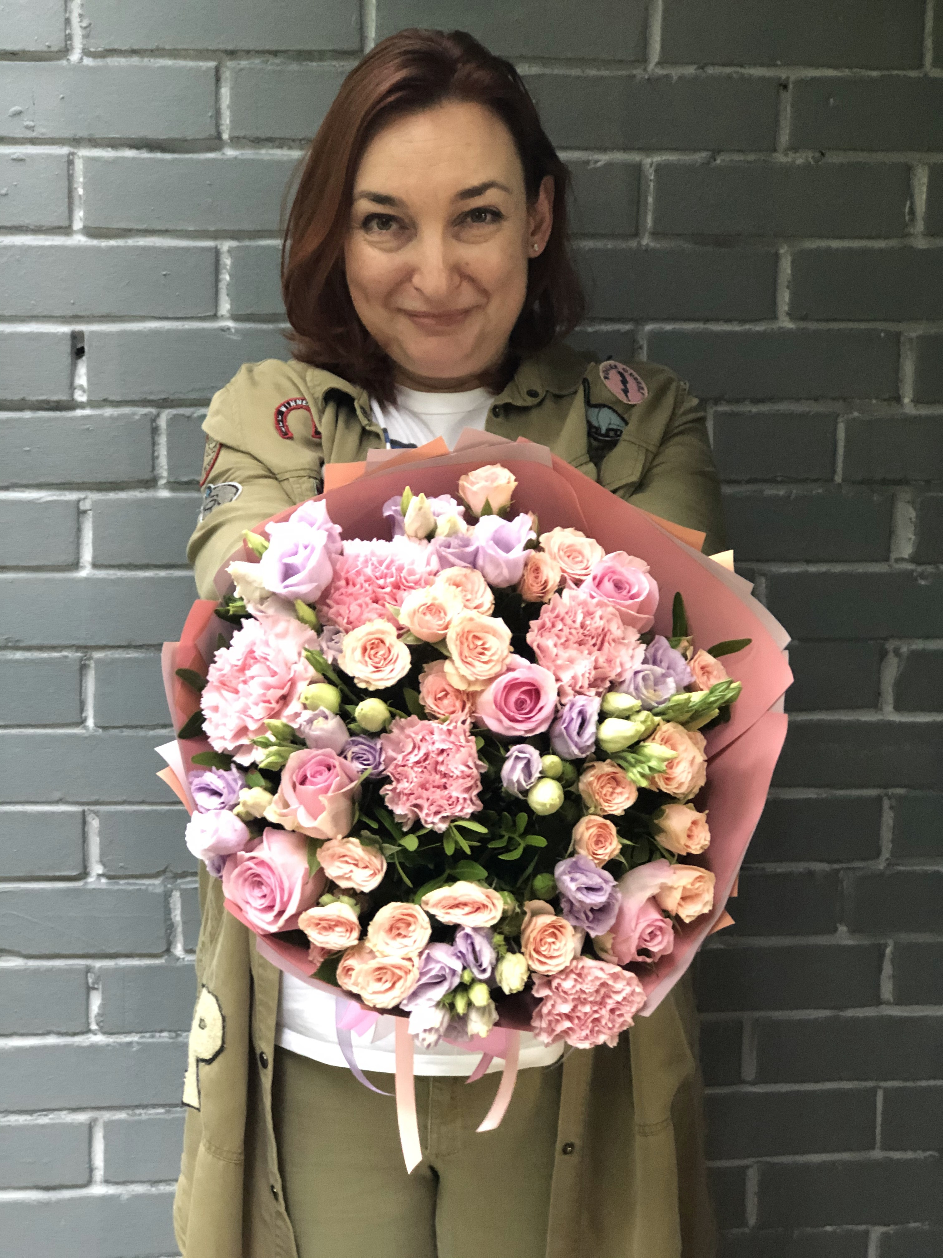 с розами/с розой кустовой/с гвоздиками/с лизиантусами