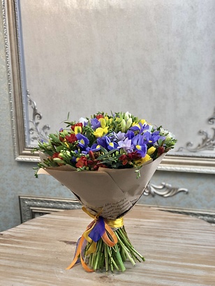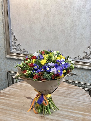 Сборный букет. Состав: Ирис 13, Фрезия 50