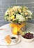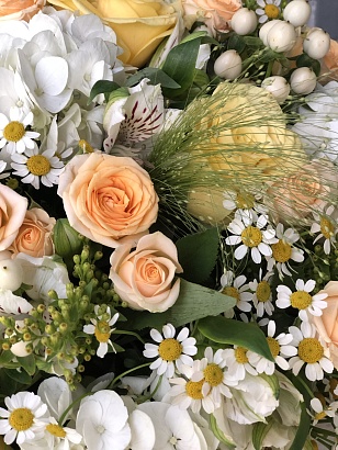 с розами/с гиперикумом/с матрикарией/с питоспорумом/с розой кустовой/с солидаго/с альстромериями
